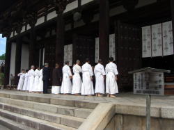 ごあいさつ 宝蔵院流高田派槍術第二十世宗家 鍵 田 忠 兵 衛 第18回目になる宝蔵院流槍術興福寺奉納演武会を今年も開催させていただくことができました。これも偏に多川俊映興福寺貫主様のご理解、ご協力の賜だと感謝申し上げる次第であります。 ご承知の通り宝蔵院流槍術は、1500年代にこの興福寺の子院であった宝蔵院の住職覚禅房法印胤栄師が創始した槍術であります。それ以来、四百数十年の歴史を経て現在に伝承されてまいりました。「突けば槍、薙げば薙刀、引けば鎌。とにもかくにも外れあらまし」という詠歌が残っておりますが、当時画期的な武器でありました。宝蔵院流槍術も江戸時代には十数流派あった訳でありますが、今日伝承されているのは我々がやらしていただいておる高田派だけになっております。 今年の夏、北京オリンピックが開催されましたが、その中で柔道においても4つの金メダル、1つの銀メダル、2つの銅メダルを獲得することができました。日本のお家芸として、また日本の武道としてなんとか面目が保たれ、喜ばしいことでありました。が、しかし試合を見ていて柔道が武道で無く、スポーツになってしまった寂しさというものを感じました。一本の技を取りに行くのではなく、手や足を出すだけでポイントを稼ぐような仕草をする。また、最後まで正々堂々と戦わない外国人選手を多く見掛けました。本来の日本の武士道とは何か、「礼に始まり礼に終わる。」「惻隠の情」(敗者・弱者に対する思いやり)こういった物が武士道精神であります。我々は宝蔵院流槍術を通じて、日本の古武道、そして日本の武士道というものをしっかりと広めて行かなければならないと再確認をいたしました。 さて、昨年は宝蔵院覚禅房法印胤栄師の没後400年を記念して、宝蔵院槍術とご縁のある14流派にもご参加いただいて古武道奉納演武大会を開催させていただきましたが、今年は例年の我流派だけでの奉納演武会に戻させていただき開催させていただきます。どうぞ宝蔵院の槍術をご覧いただき、日本の古武道、日本の武士道というものを少しでもご理解いただければ幸甚に存じます。 最後になりましたが、多川俊映興福寺貫首様、松岡泰夫保存会会長はじめ関係皆様に衷心より感謝と御礼を申し上げご挨拶とさせていただきます。 合掌 |