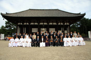 奈良宝蔵院流槍術保存会 会長 松 岡 泰 夫 この奉納演武会も回を重ね、お陰様で18回目の奉納演武会を迎えることができました。毎年多くの皆様のご観覧を得て、全く奈良秋の恒例行事として定着した感がございます。石田和外先生や元奈良市長・鍵田忠三郎師の強い熱意と、西川源内先生・鍵田宗家の懸命なご指導と、そして奈良が誇るべき文化として多くの方々にご理解を賜り、今では東大阪、名古屋、ドイツにも道場を開き、伝習者も100名を超えると聞き及んでおります。今日のこのような隆盛を見るに至りましたことは誠に隔世の感であり感慨に堪えません。 昨年は流祖胤栄師没後400年という節目の年を迎えました。私共はこの記念の年を迎えるにあたり、流祖を顕彰し奈良の大切な文化であるこの槍術を永く伝えるために、宝蔵院流槍術一門 墓所を改修し、また興福寺ご仏前にご縁のご宗家をお迎えして、古武道15流派による記念の奉納演武会を開催させて頂きました。事業挙行にあたり、多くの関係皆様方のご助力を賜り、ようやく成功裡に遂行させていただくことができました。篤く御礼を申し上げます。 今後とも、奈良発祥の日本を代表する槍術・宝蔵院流を御宗家様、興福寺様、関係各位のご協力をいただきながら、多くの市民皆様と共に永久に伝え続けるよう尽力してまいりたいと考えております。 合掌 |