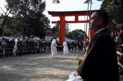 宝蔵院流槍術は奈良が発祥の武道です。その流祖は覚禅房胤栄(かくぜんぼう いんえい)といい、春日若宮「おん祭」に縁(ゆかり)の深い興福寺の子院・宝蔵院に住んでいました。 このご縁で、宝蔵院流槍術は「おん祭」に毎年参加し、今年も下記のとおり「影向の松」前にて演武を奉納させていただきました。 日時 平成21(2009)年12月17日(木)14:15 場所 松ノ下 「影向の松(ようごうのまつ)」前 (春日大社 一の鳥居 東)