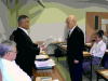 本年5月に宝蔵院流槍術伝習者への昇格・昇級審査を実施しました。 奈良宝蔵院流槍術保存会総会終了後、保存会役員、会員及び伝習者立ち会いのもと、本年度の昇格・昇級審査合格者に印可状・修得証が授与されました。 平成22(2010)年6月5日(土) 奈良市中央武道場 会議室 本年度の昇格・昇級者は次の通りです。 なお、「免許皆伝」印可状の授与は6年ぶり、「免許」印可状の授与は5年ぶりです。 |